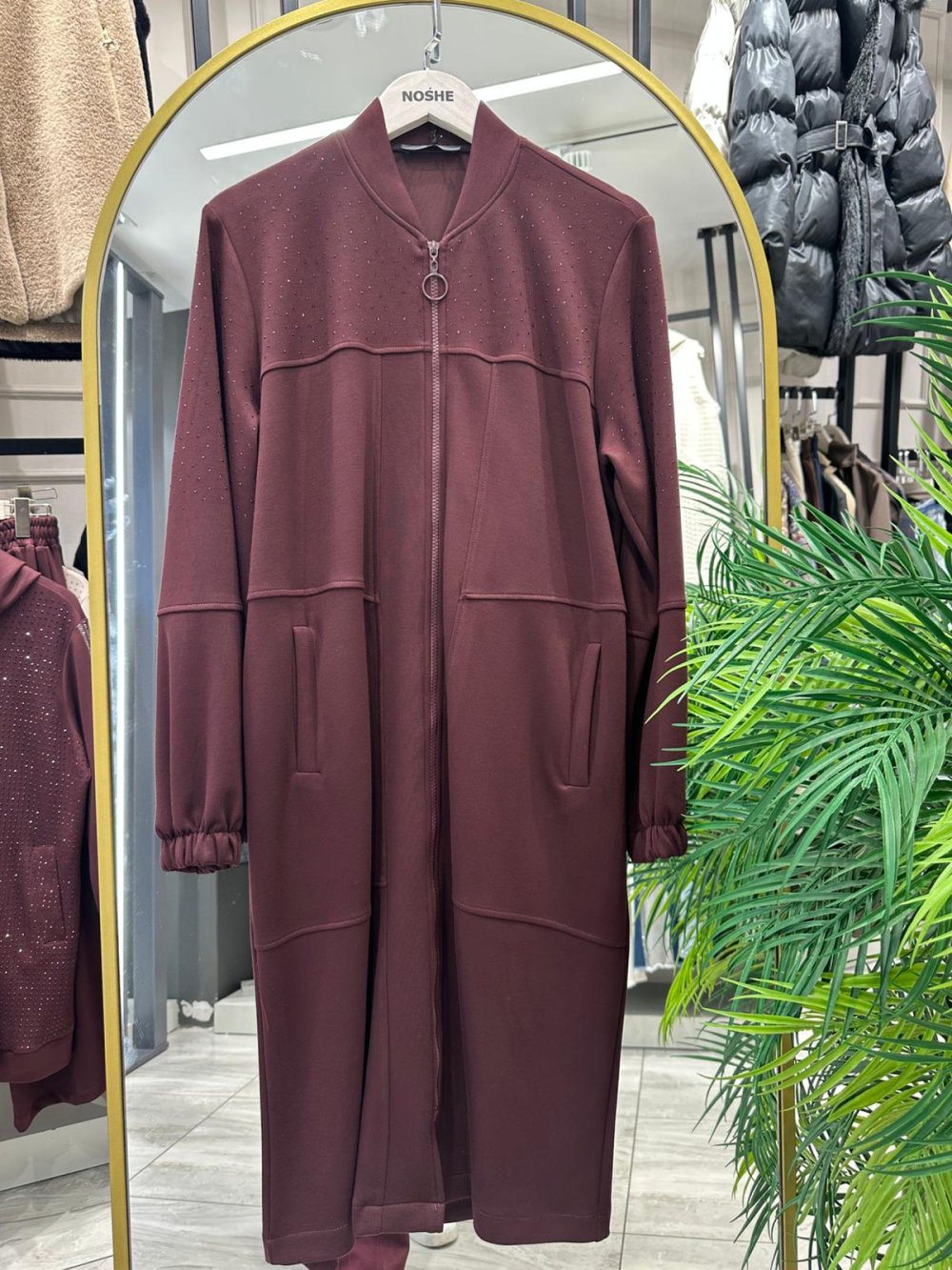 Taş Detaylı Uzun Ceket / Kap Bordo