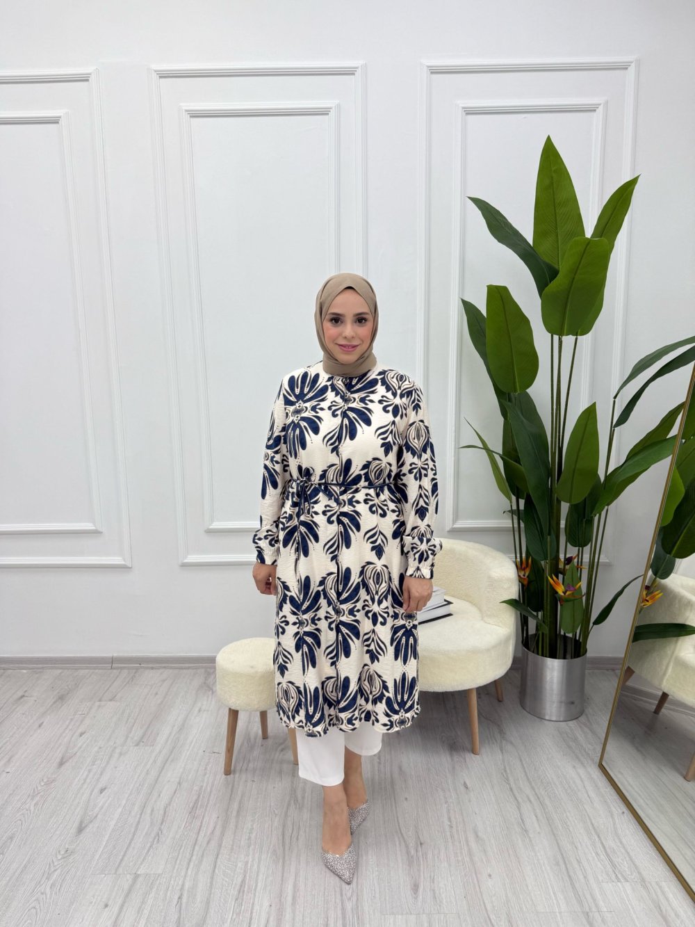 Uzun Desenli Tunik Lacivert