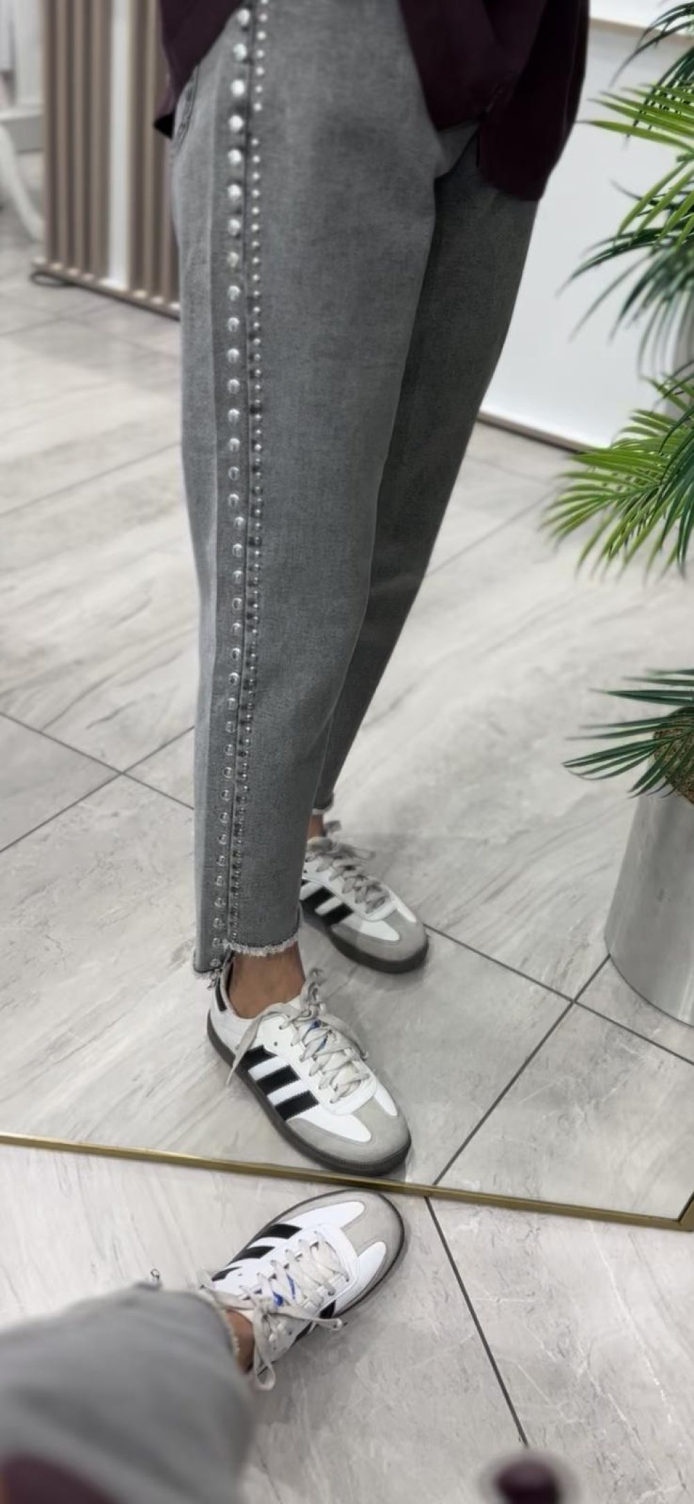Zımba Detaylı Likralı Kot Pantolon Gri